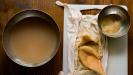 - débarrasez-vous des solides restants et utiliser une étamine sur une passoire pour filtrer à nouveau le jus de la purée épaisse, pendant 1 heure