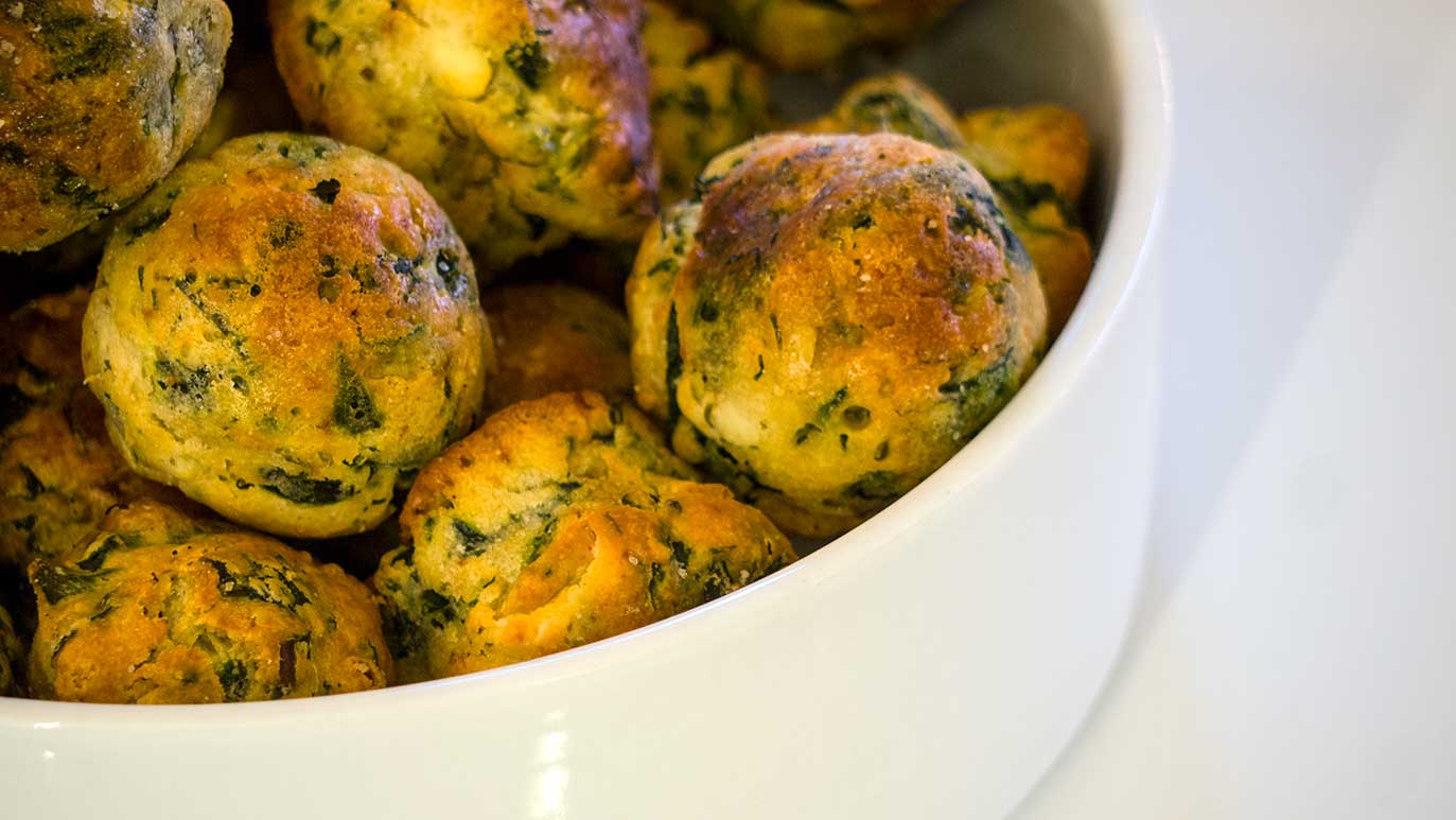- add the spinach and feta mixture to the dry flour mixture and mix together until well-coated