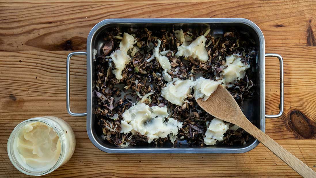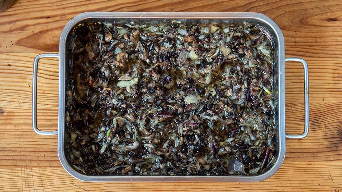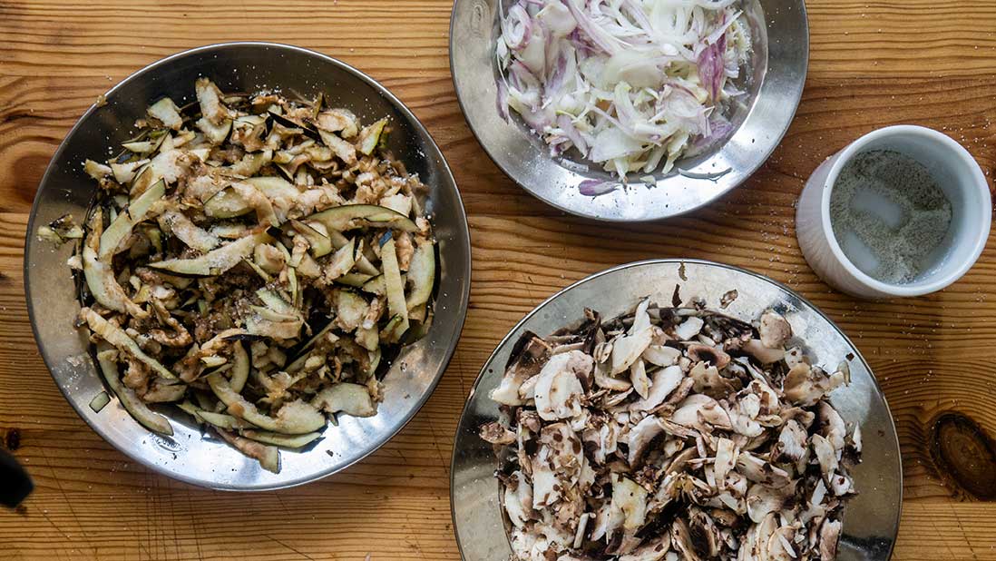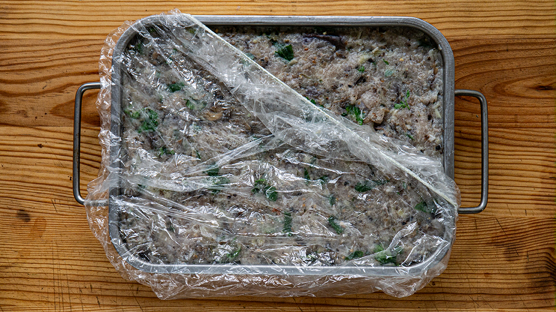 Mushrooms and eggplant, ingredients often used in vegetarian sausage recipes, make up about one-third of the total meat weight when properly strained and pressed. They are excellent at mimicking the flavors and textures of meat.