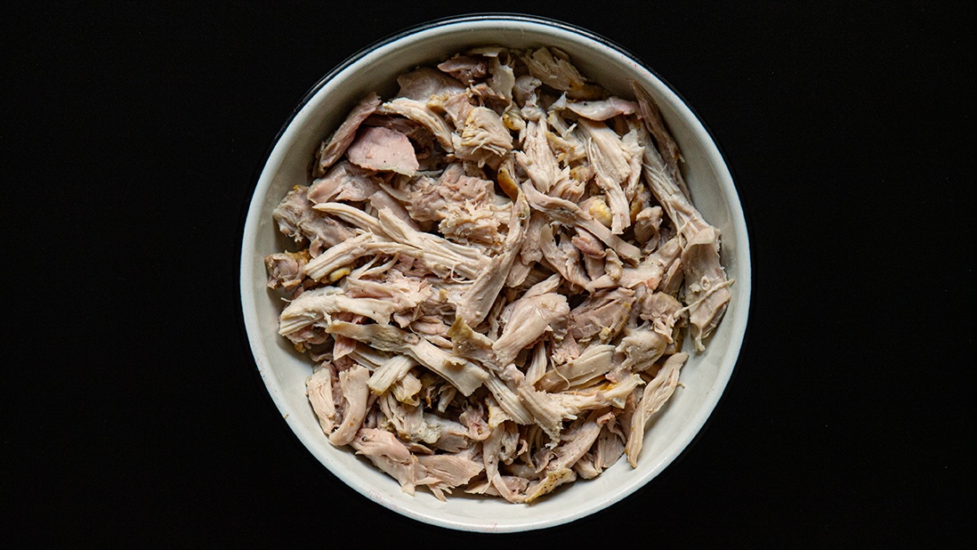 - 325 g (2 ¼ tasses) de viande de poulet cuite et effilochée