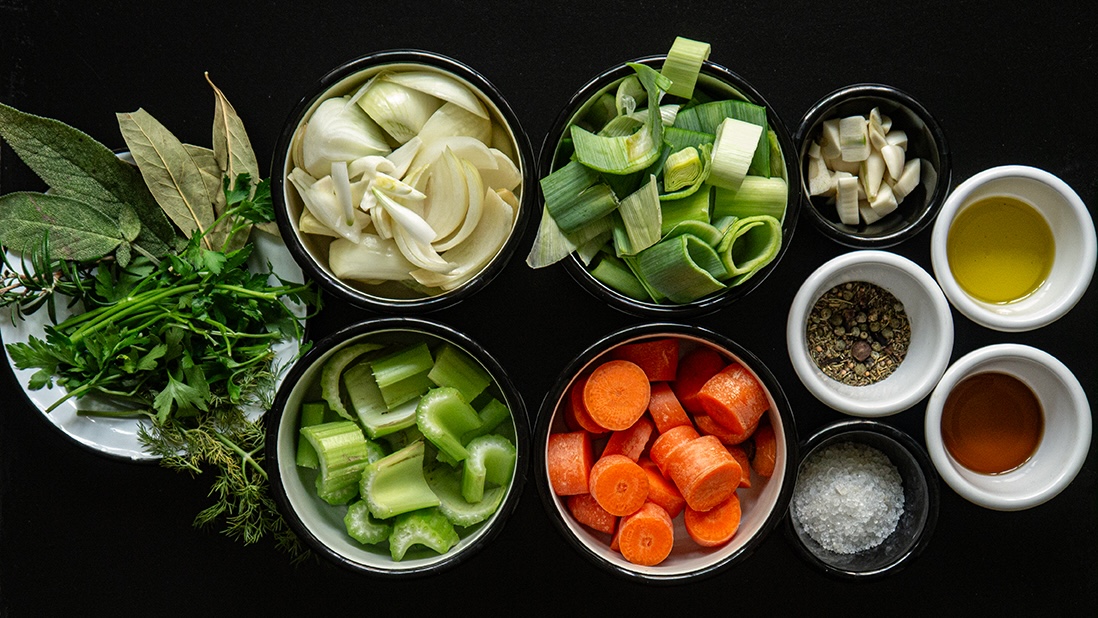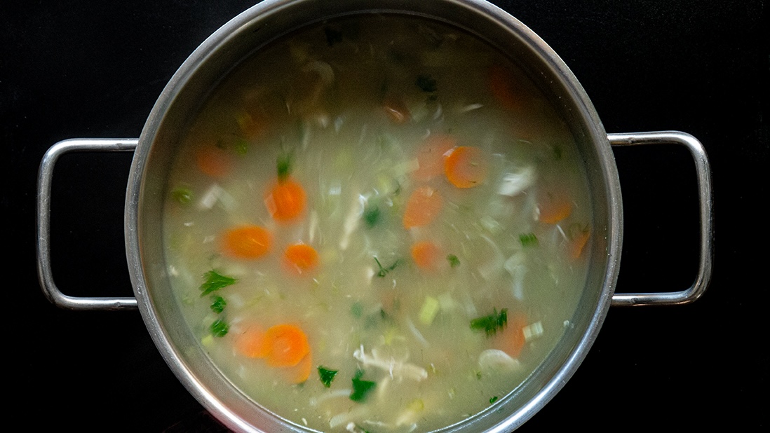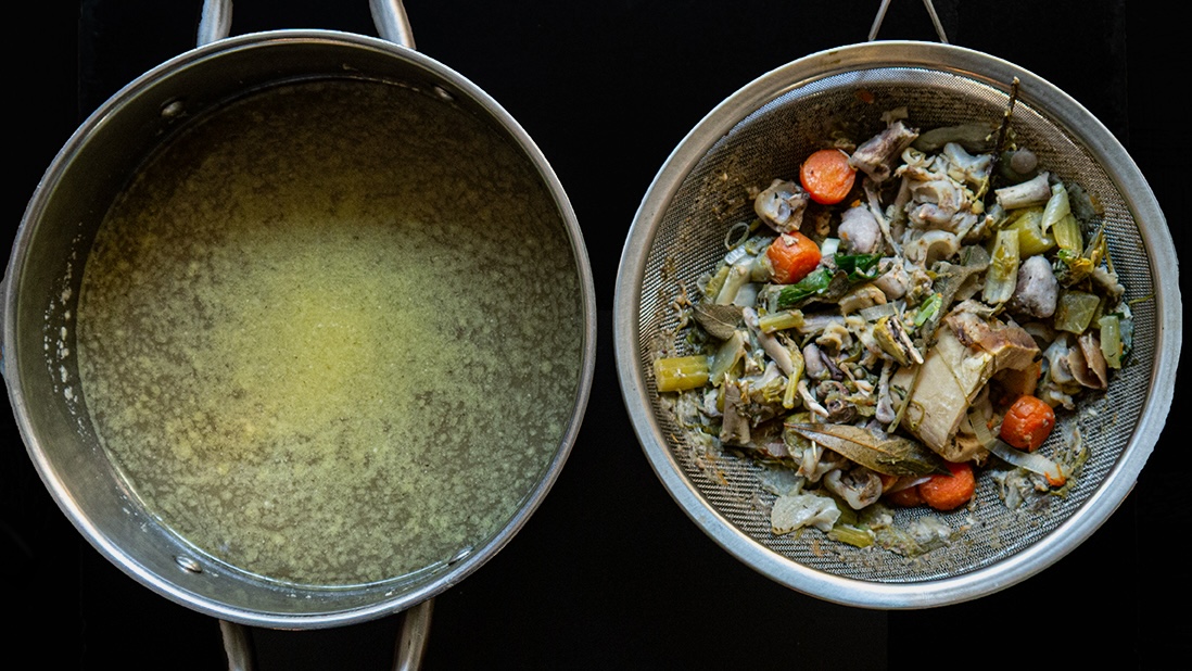 2ème addition (après la deuxième filtration du bouillon et pour assembler la soupe) :
