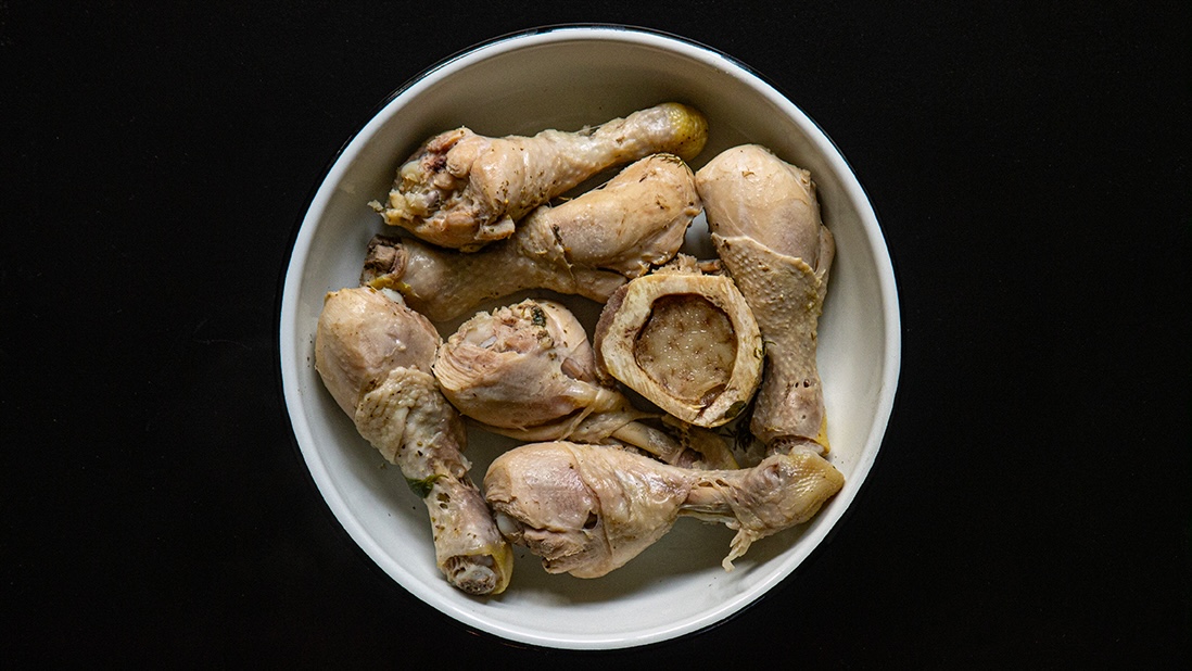 - 850 g (6 entiers ou 4 tasses) de pilons de poulet