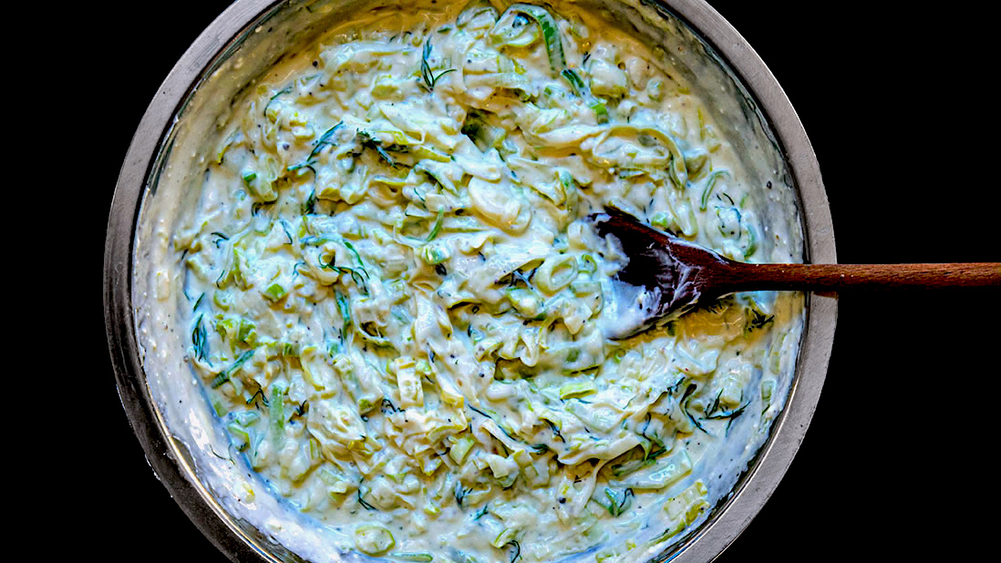 Pour moi, si je dois manger plus de légumes (même si j'en mange déjà beaucoup grâce à mon régime méditerranéen) et si je vais préparer une quiche aux légumes, je veux que la saveur de ce légume ou des légumes combinés ressorte et ne soit pas étouffée par des quantités trop importantes de produits laitiers et d'œufs. Je réduis souvent les fromages, la crème et les œufs dans les quiches en préparent une béchamel avec les morceaux de légumes restants, mais comme je n'utilise ici que des poireaux, je suis restée simple et je n'ai pas fait de béchamel pour tout alléger. Et n'oubliez pas d'ajouter beaucoup d'herbes fraîches dans la garniture, comme plus d'aneth, de ciboulette et de persil aussi.
