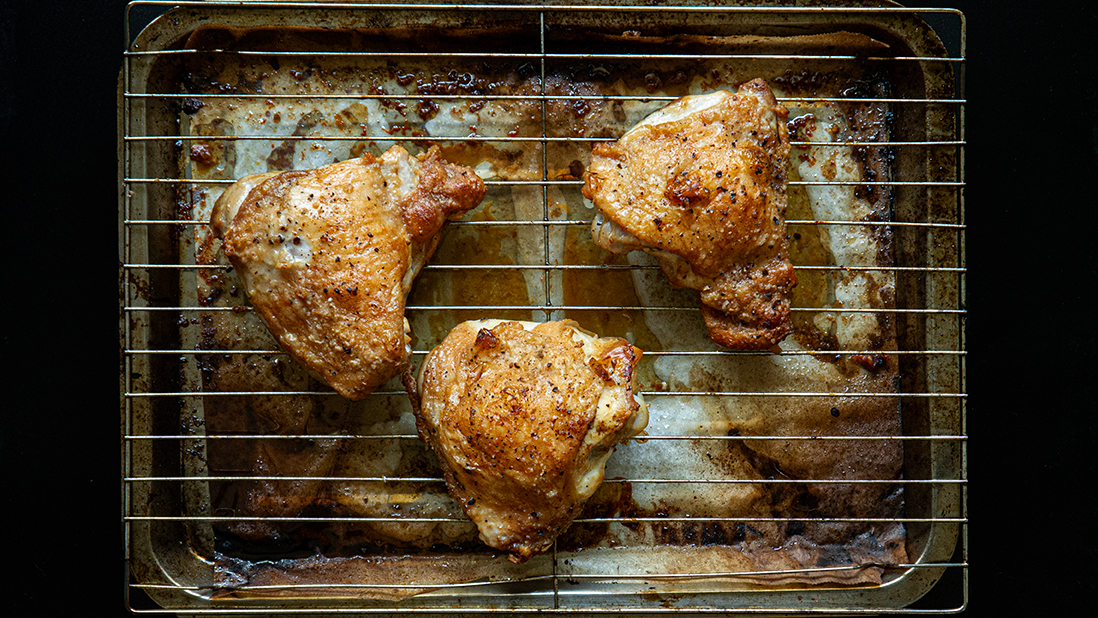 hauts de cuisses de poulet rôtis (250g de viande + 50g de peau + 100g d'os + 30g de gras) :