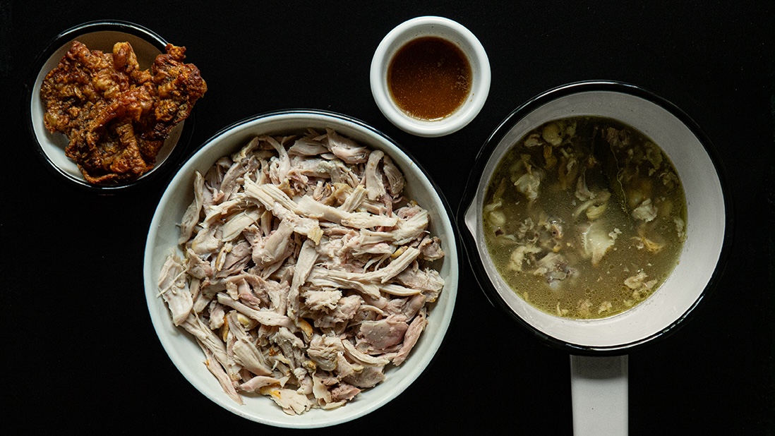 - 100g (1 tasse) d'os restants (brisés en petits morceaux) et restes