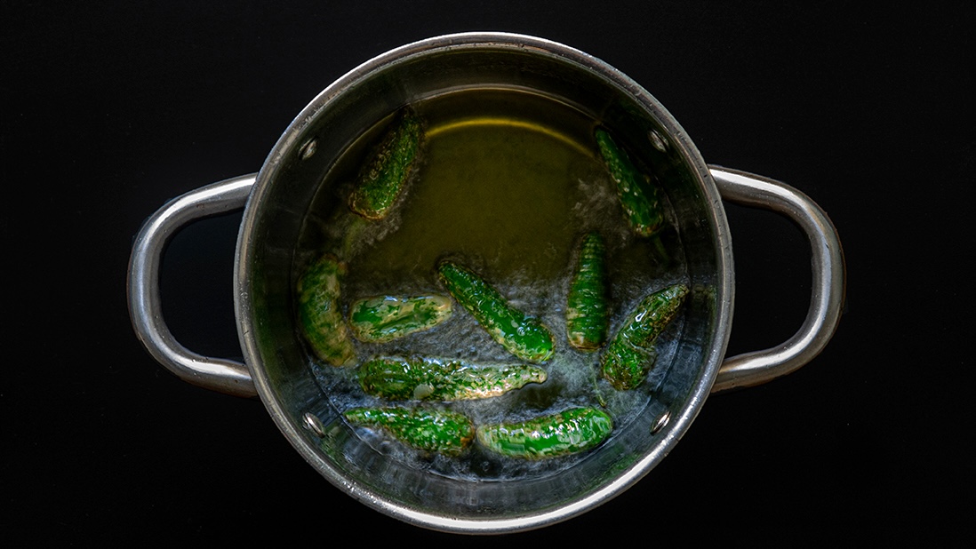 Cette recette ne pourrait pas être plus simple, avec seulement 3 ou 4 ingrédients : les petits poivrons, l’huile de friture (qui peut être une huile neutre comme de tournesol ou de grignons), de l’huile d’olive extra vierge à arroser après friture (qui peut également être l’huile de friture) et de la fleur de sel.